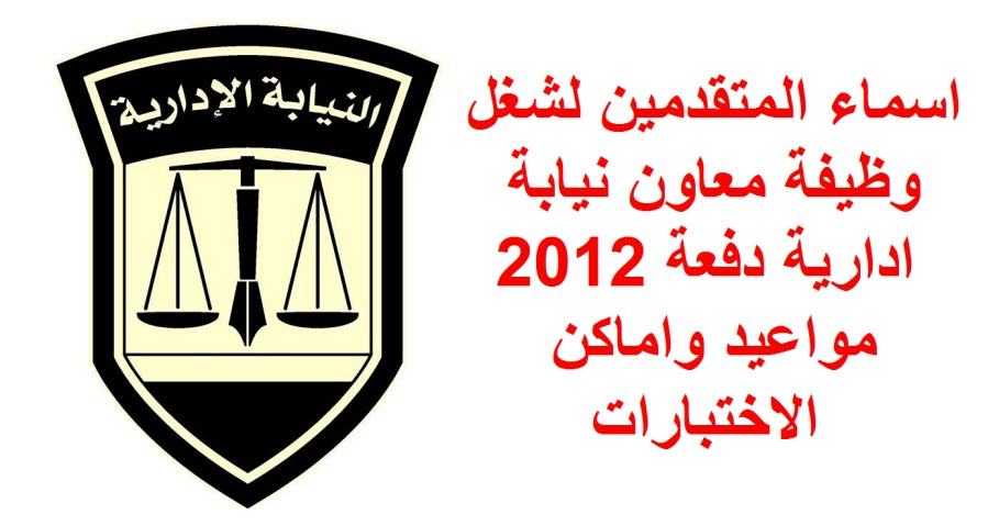 ننشر كشوف اسماء ومواعيد الاختبارات للمتقدمين لوظيفة معاون نيابة إدارية دفعة ٢٠١٢