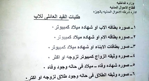 الأوراق المطلوبة لاستخراج طلبات القيد العائلى للاب