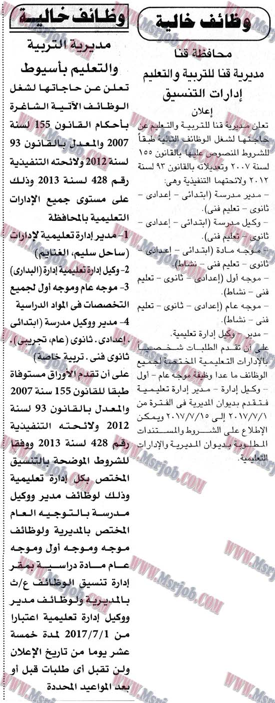 مسابقة وزارة التربية والتعليم الجديدة 2016 2017 معلم مساعد بالبحيرة موقع المديرية عيون مصر