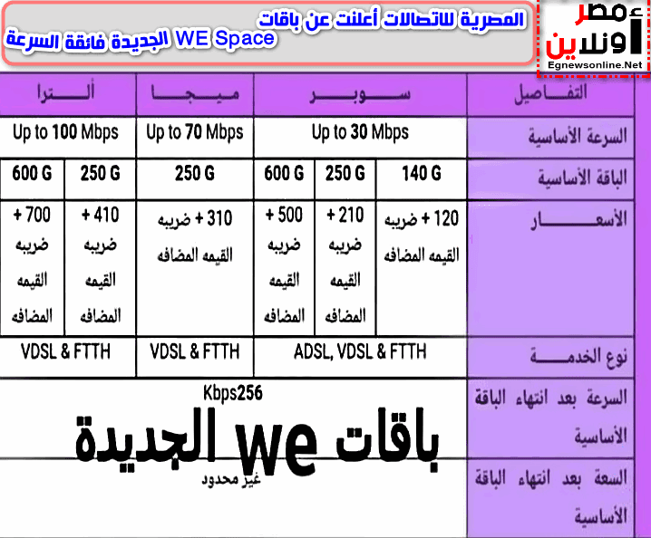 مصر اونلاين الاخبارية المصرية للاتصالات أعلنت عن باقات We Space الجديدة فائقة السرعة