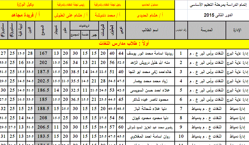 نتيجة الصف الثالث الإعدادى نصف العام 2015 مدرسة المنزلة الرسمية للغات