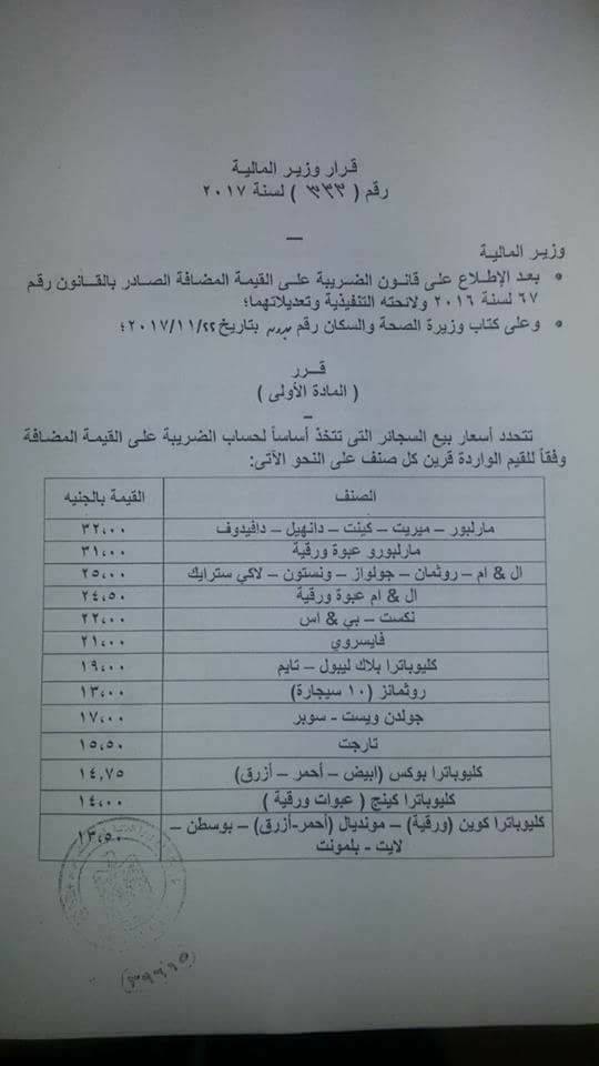 ننشر الزيادة الرسميه بأسعار السجائر لجميع الاصناف قرار وزارة الماليه مدونة وظيفتى